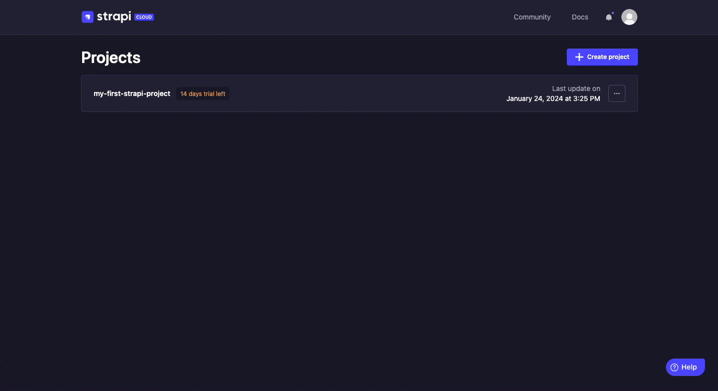 You will see the Strapi Cloud project we've just created, my-strapi-project